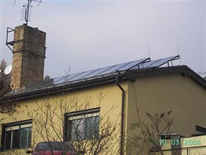 16 kolektorů Heliostar pro ohřev TUVv ubytovacím zařízení a zimní přitápění domu správce
